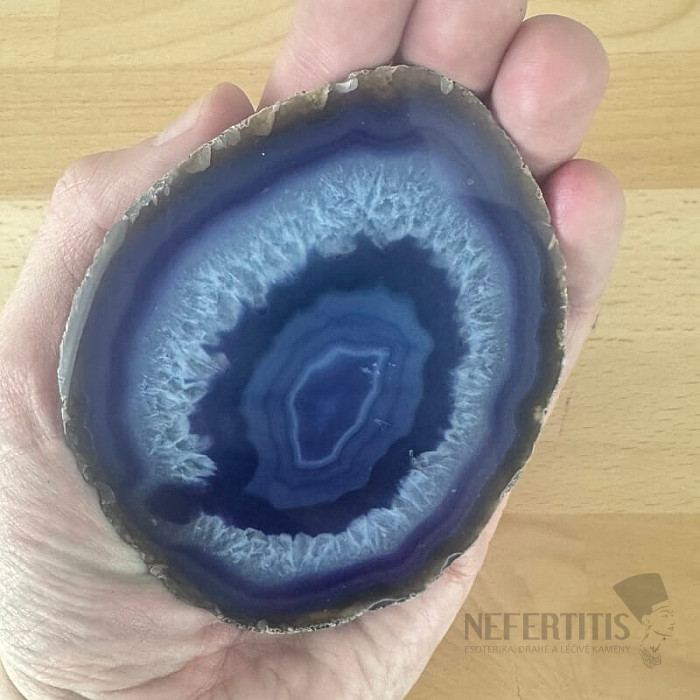 Atraktívny leštený plátok achátu. Dekoratívny prvok, ktorý vzniká rozrezaním a leštením prírodného achátu. Tento achátový plátok je dofarbovaný. Kupujete priamo vyobrazený kus.