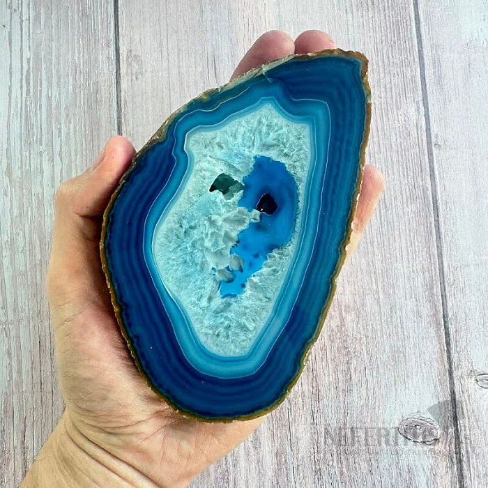 Atraktívny leštený plátok achátu. Dekoratívny prvok, ktorý vzniká rozrezaním a leštením prírodného achátu. Tento achátový plátok je dofarbovaný. Kupujete priamo vyobrazený kus.