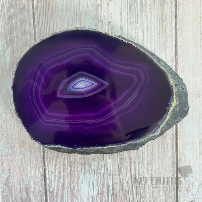 Atraktívny leštený plátok achátu. Dekoratívny prvok, ktorý vzniká rozrezaním a leštením prírodného achátu. Tento achátový plátok je dofarbovaný. Kupujete priamo vyobrazený kus.