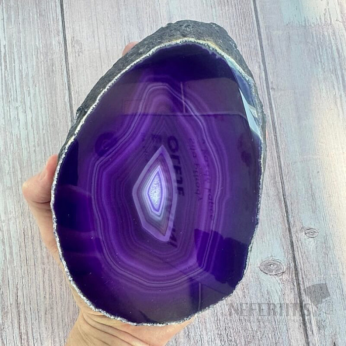 Atraktívny leštený plátok achátu. Dekoratívny prvok, ktorý vzniká rozrezaním a leštením prírodného achátu. Tento achátový plátok je dofarbovaný. Kupujete priamo vyobrazený kus. Krajina pôvodu: Brazília Achátové… viac »