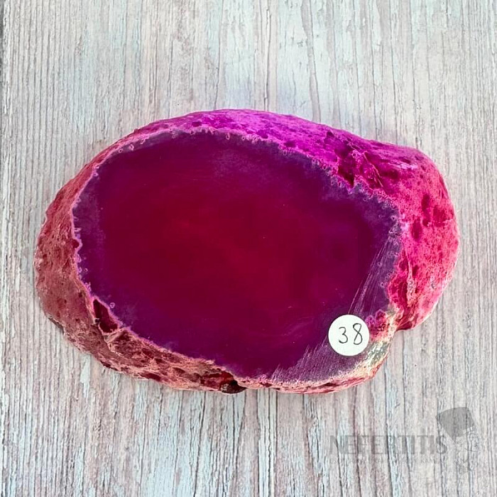 Atraktívny leštený plátok achátu. Dekoratívny prvok, ktorý vzniká rozrezaním a leštením prírodného achátu. Tento achátový plátok je dofarbovaný. Kupujete priamo vyobrazený kus. Krajina pôvodu: Brazília Achátové… viac »