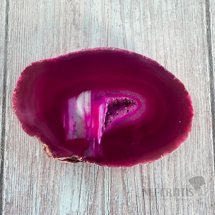 Atraktívny leštený plátok achátu. Dekoratívny prvok, ktorý vzniká rozrezaním a leštením prírodného achátu. Tento achátový plátok je dofarbovaný. Kupujete priamo vyobrazený kus.