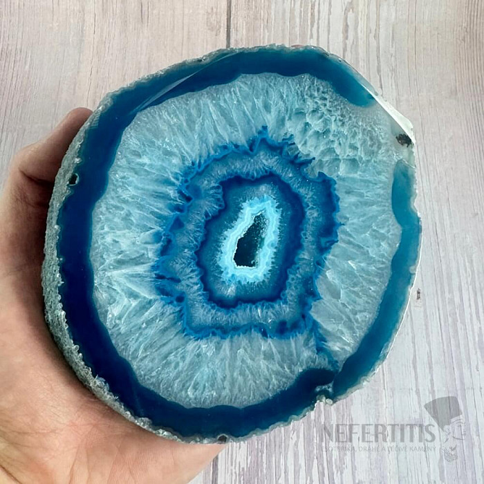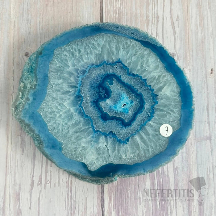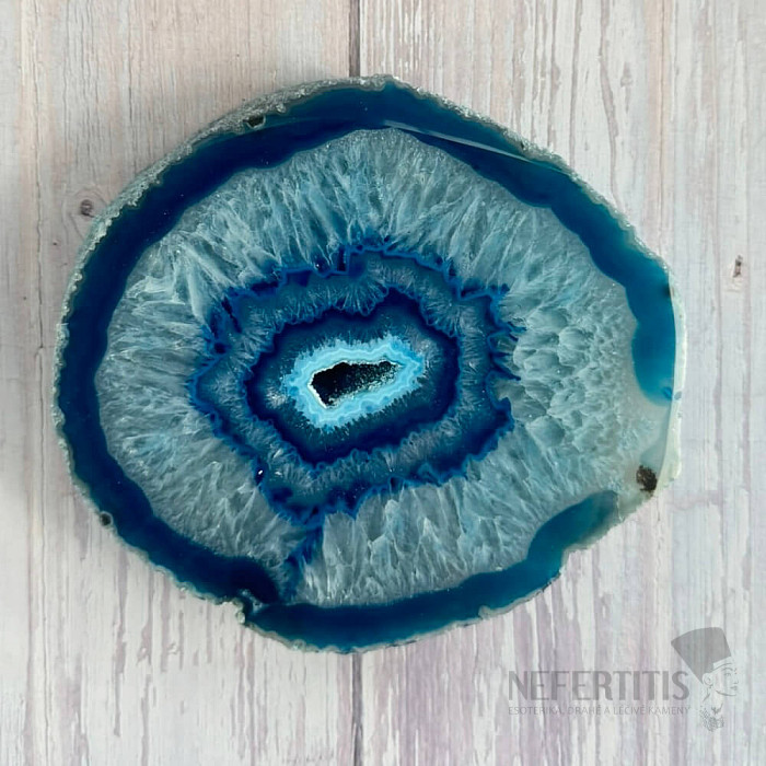 Atraktívny leštený plátok achátu. Dekoratívny prvok, ktorý vzniká rozrezaním a leštením prírodného achátu. Tento achátový plátok je dofarbovaný. Kupujete priamo vyobrazený kus.
