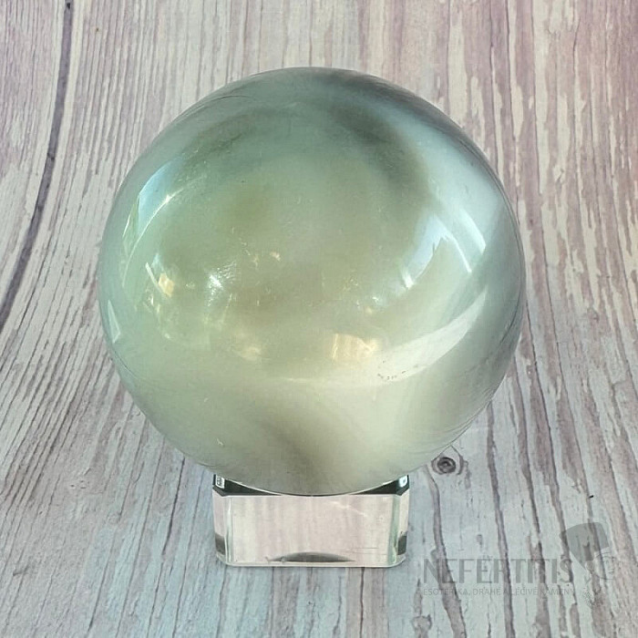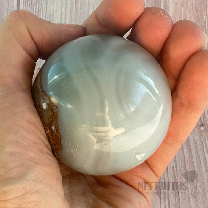 Leštená guľa zo šedého achátu. Krajina pôvodu: Madagaskar. Kupujete priamo vyobrazenú guľu. Stojančeky a podstavce pod minerálmi kúpite tu. Upozornenie: kameň nie je dokonale ohladený, nechtom sa dajú nahmatať vlasové… viac »