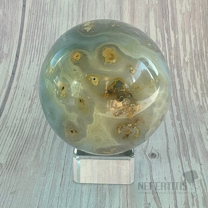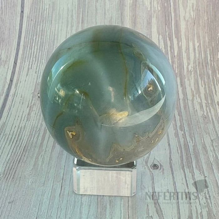 Leštená guľa zo šedého achátu. Krajina pôvodu: Madagaskar. Kupujete priamo vyobrazenú guľu. Stojančeky a podstavce pod minerálmi kúpite tu. Upozornenie: kameň nie je dokonale ohladený, nechtom sa dajú nahmatať vlasové… viac »
