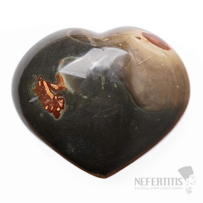 Leštený polychrómny jaspis v tvare srdca výberovej kvality.