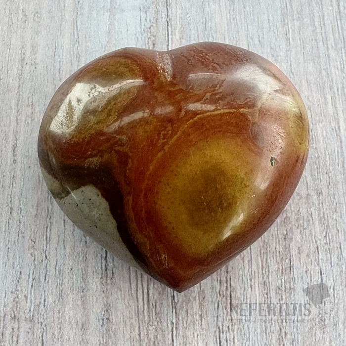 Leštený polychrómny jaspis v tvare srdca výberovej kvality.