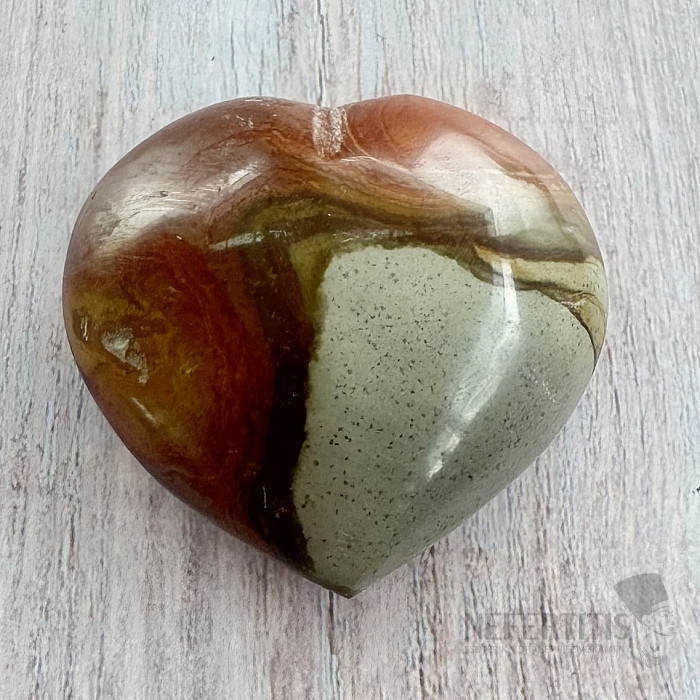 Leštený polychrómny jaspis v tvare srdca výberovej kvality. Krajina pôvodu: Madagaskar. Kupujete priamo vyobrazený jaspis. Polychrómny jaspis je veľmi atraktívny vďaka farebným kombináciám, v ktorých sa vyskytuje, a… viac »