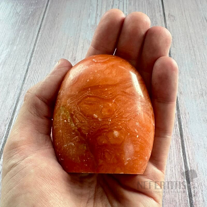 Dekoratívne leštený freeform z oranžového kalcitu. Krajina pôvodu: Madagaskar. Kupujete priamo vyobrazený oranžový kalcit. Prírodný materiál nie je dokonalý, môžu v ňom byť drobné vlasové prasklinky. Charakteristika:… viac »