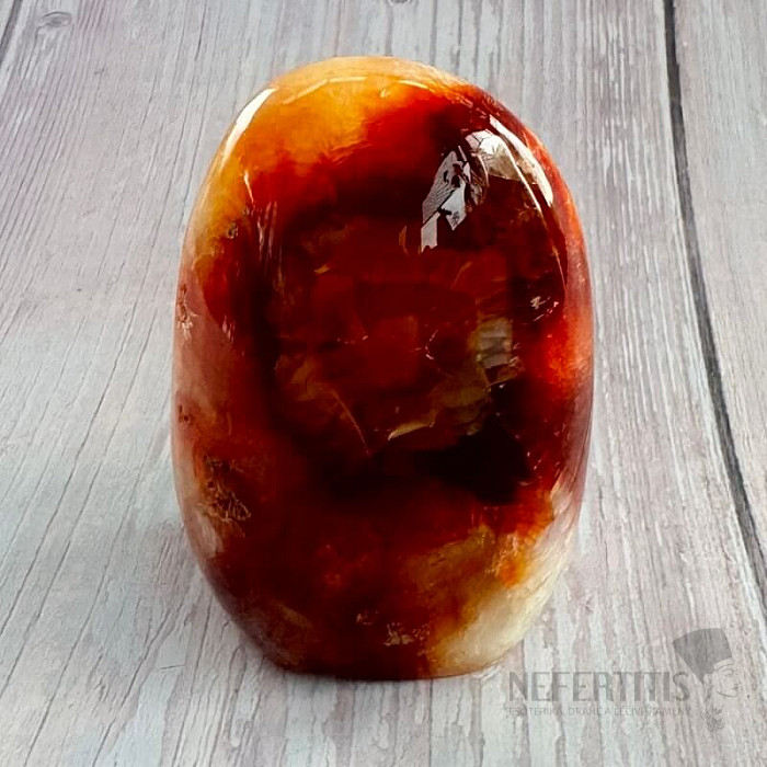 Leštený freeform karneol. Červená je farbou vášne, lásky, energie a odvahy.