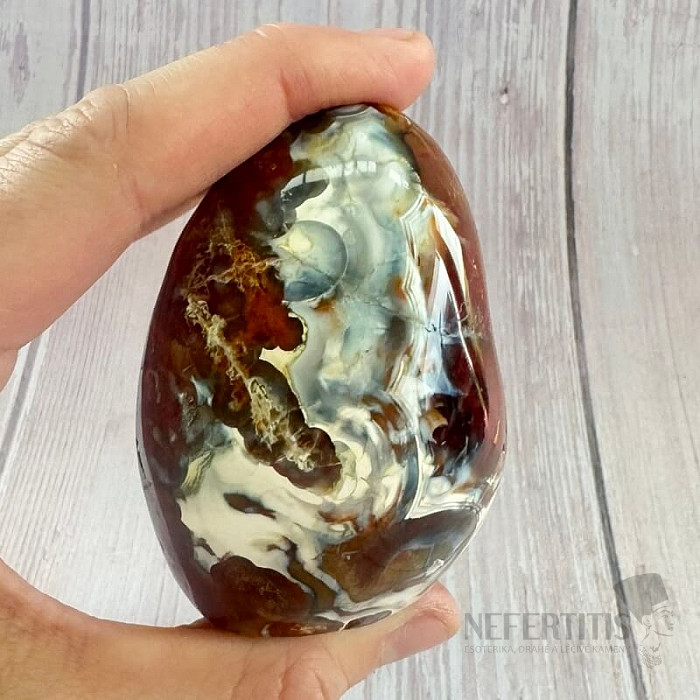 Leštený freeform karneol. Červená je farbou vášne, lásky, energie a odvahy.