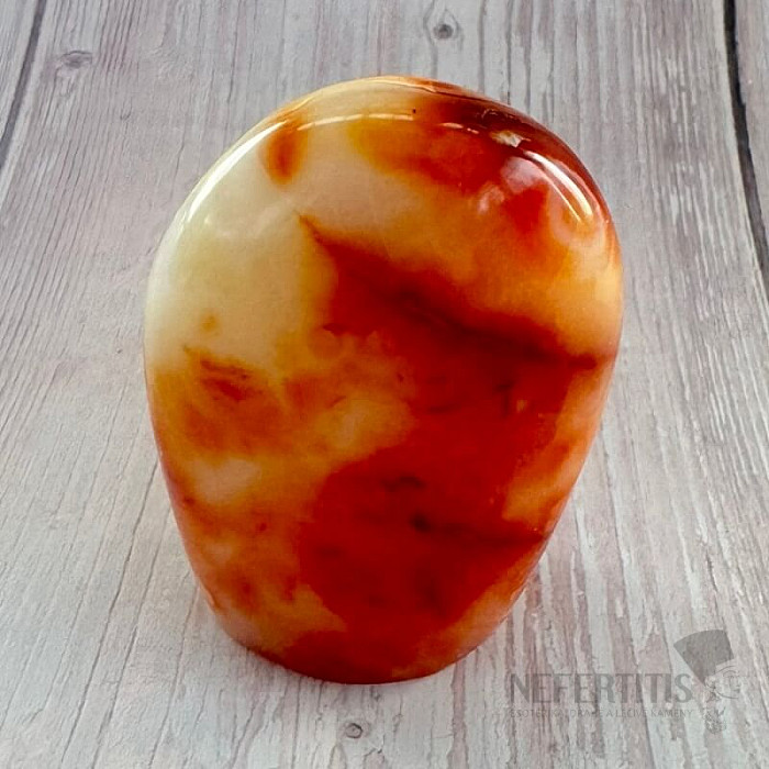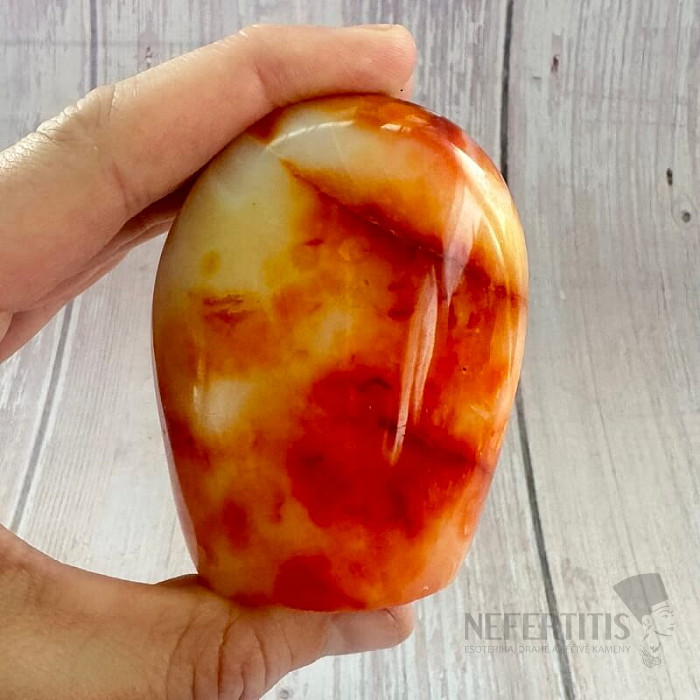 Leštený freeform karneol. Červená je farbou vášne, lásky, energie a odvahy.