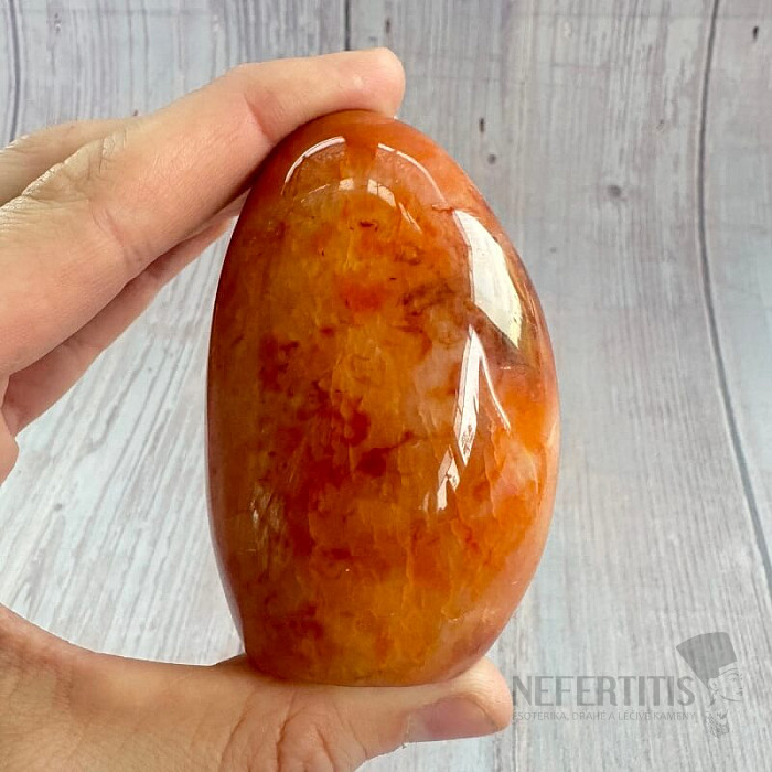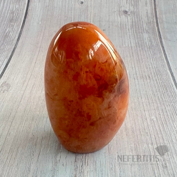 Leštený freeform karneol. Červená je farbou vášne, lásky, energie a odvahy.