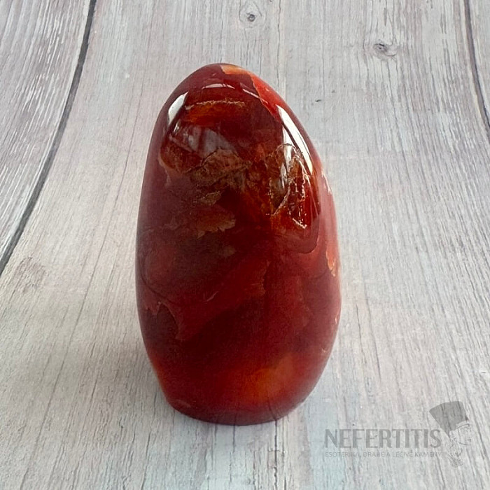 Leštený freeform karneol. Červená je farbou vášne, lásky, energie a odvahy.