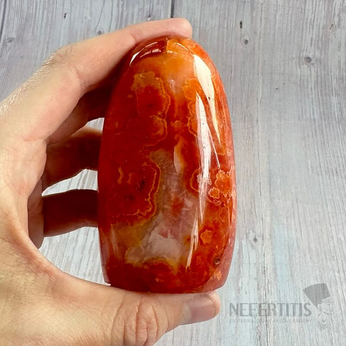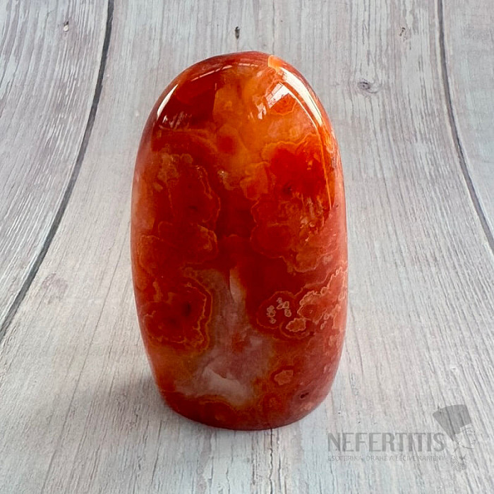 Leštený freeform karneol. Červená je farbou vášne, lásky, energie a odvahy.
