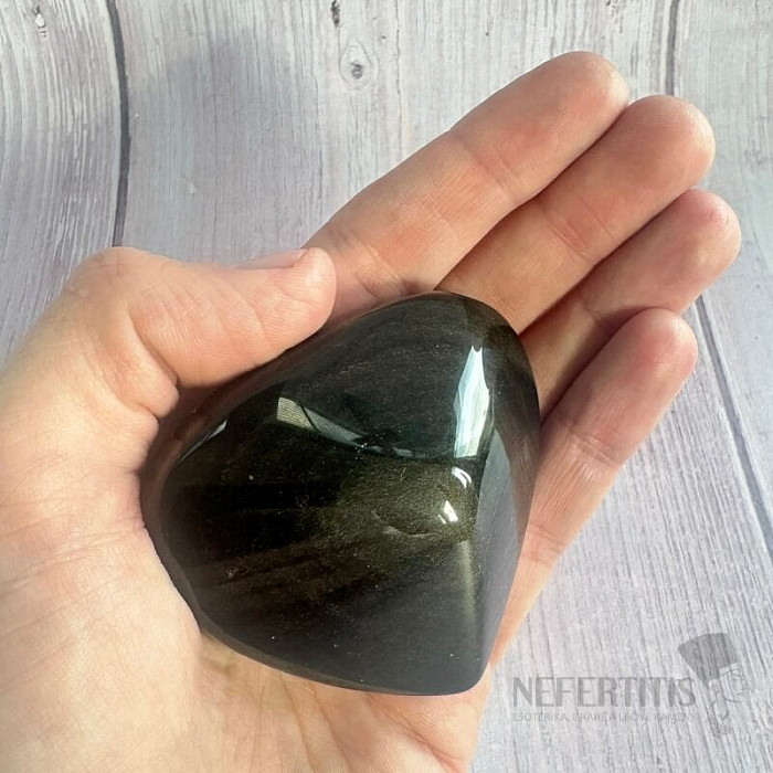 Brúsené srdce zo zlatého obsidiánu vo výberovej kvalite.