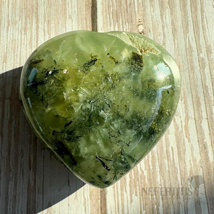 Zbierkové srdiečko z prehnitu. Kupujete priamo vyobrazený kus. Prehniť ich v ľudovej tradícii kameňom nepodmienenej lásky, ktorý prináša pokoj a ochranu, harmonizuje celé okolité prostredie svojho nositeľa. V… viac »