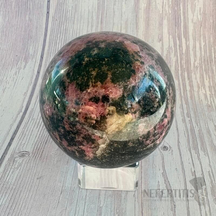 Leštená guľa z rodonitu vo výberovej kvalite.