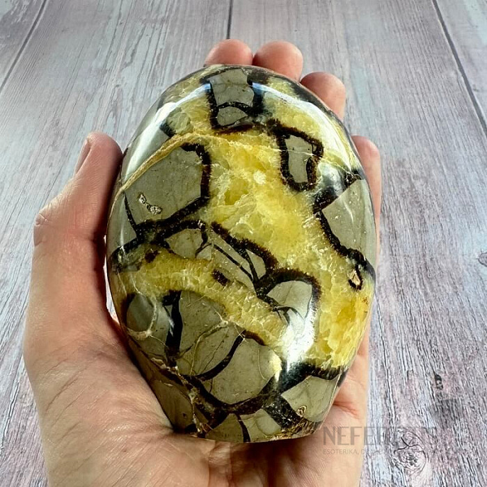 Leštená septária freeform vo výberovej kvalite. Krajina pôvodu: Madagaskar. Kupujete priamo vyobrazenú septáriu. Charakteristika: uzemnenie - upokojenie - komunikácia - čakry: koreňová, sakrálna a solar plexu - Feng… viac »