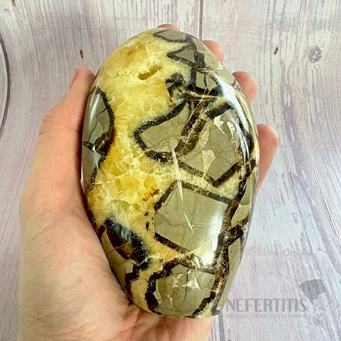 Leštená septária freeform vo výberovej kvalite. Krajina pôvodu: Madagaskar. Kupujete priamo vyobrazenú septáriu. Charakteristika: uzemnenie - upokojenie - komunikácia - čakry: koreňová, sakrálna a solar plexu - Feng… viac »