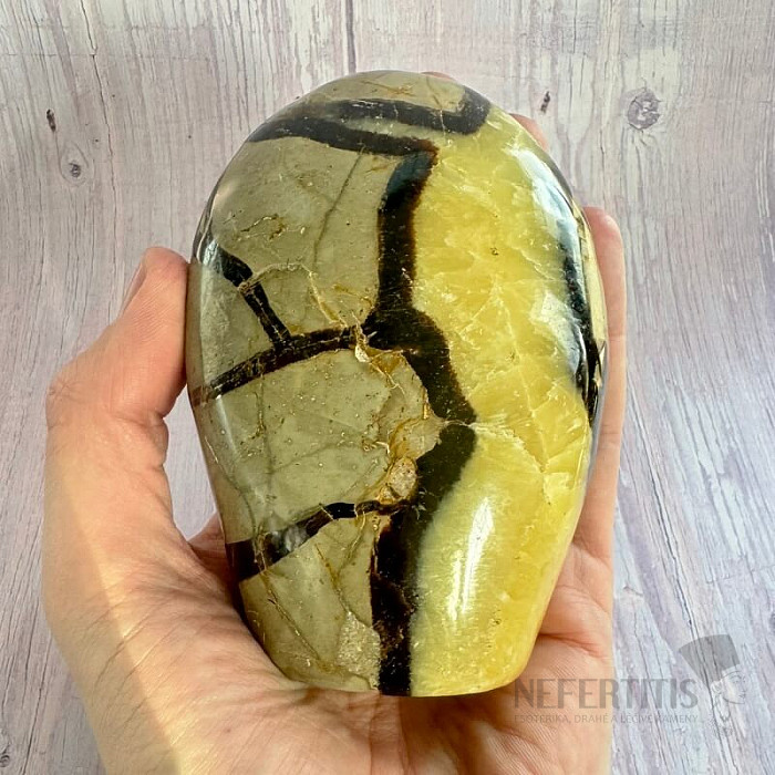Leštená septária freeform vo výberovej kvalite. Krajina pôvodu: Madagaskar. Kupujete priamo vyobrazenú septáriu. Charakteristika: uzemnenie - upokojenie - komunikácia - čakry: koreňová, sakrálna a solar plexu - Feng… viac »