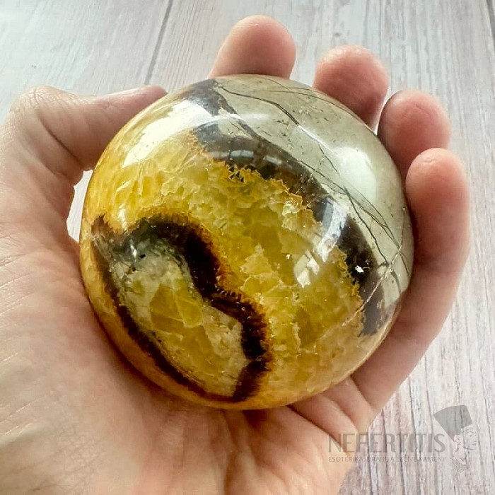 Leštená septária v tvare gule vo výberovej kvalite. Krajina pôvodu: Madagaskar. Kupujete priamo vyobrazenú septáriu. Stojančeky a podstavce pod minerálmi kúpite tu. Upozornenie: kameň nie je dokonale ohladený, nechtom… viac »