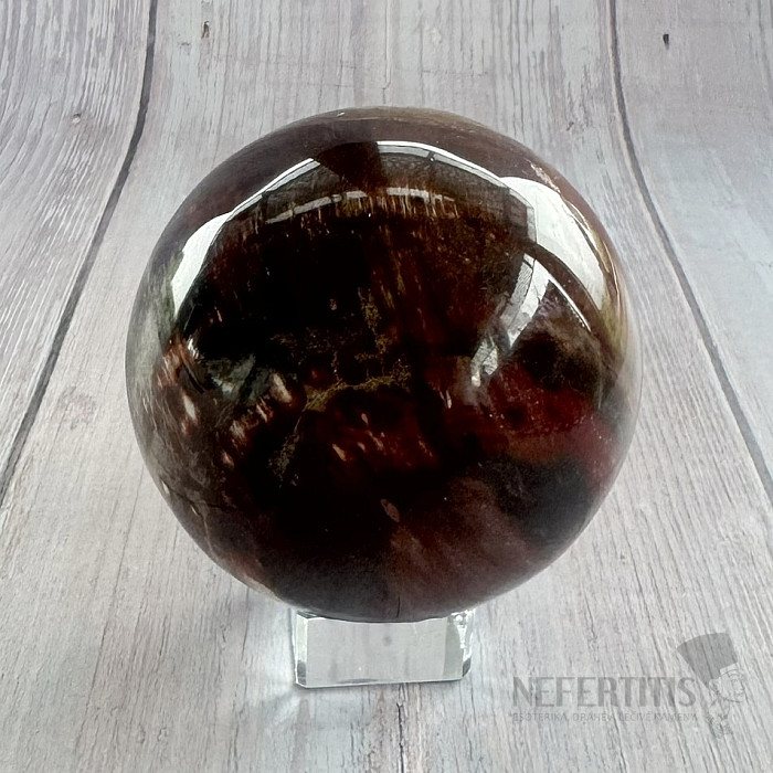 Leštená guľa zo skameneného dreva.
