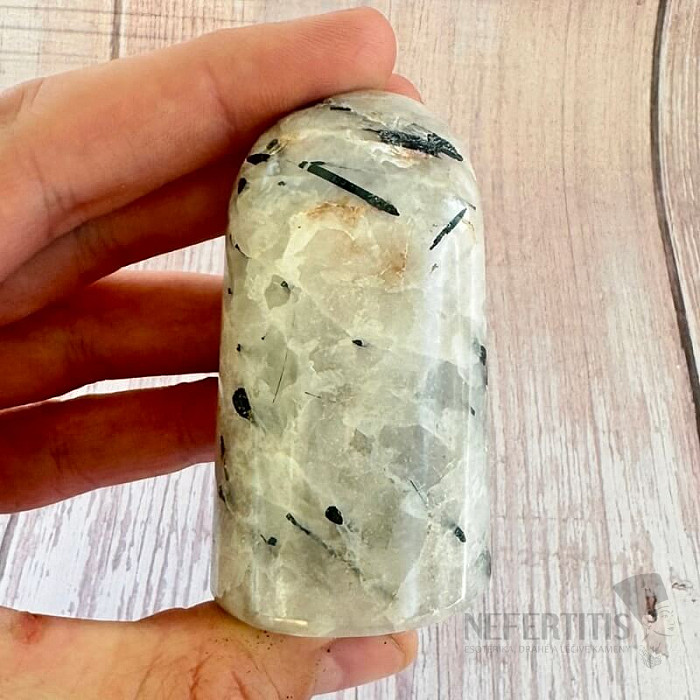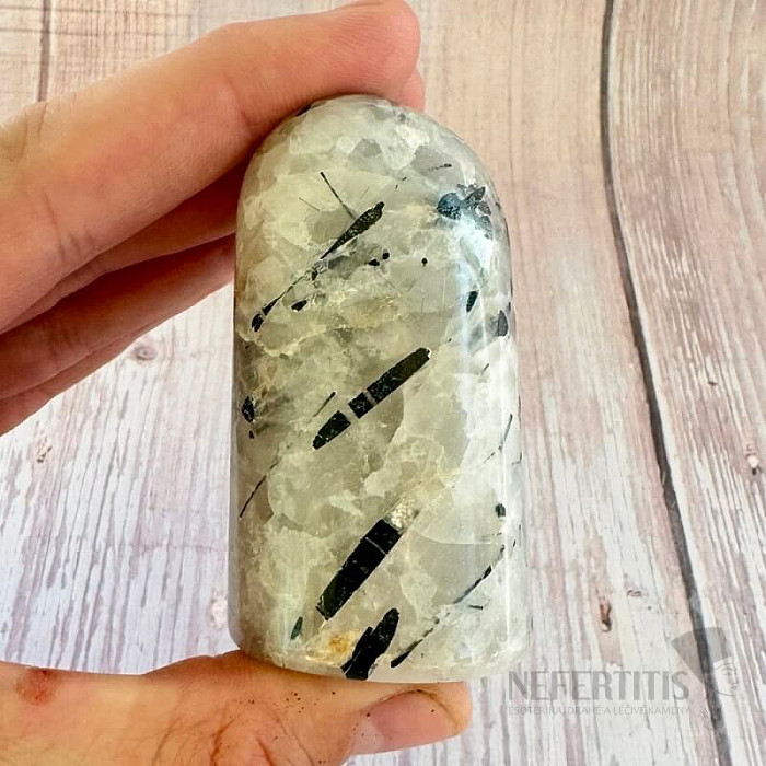 Zbierkový ručne leštený voľný tvar z turmalínu v krištáli s prekrásnou kresbou. Kupujete priamo vyobrazený kus.